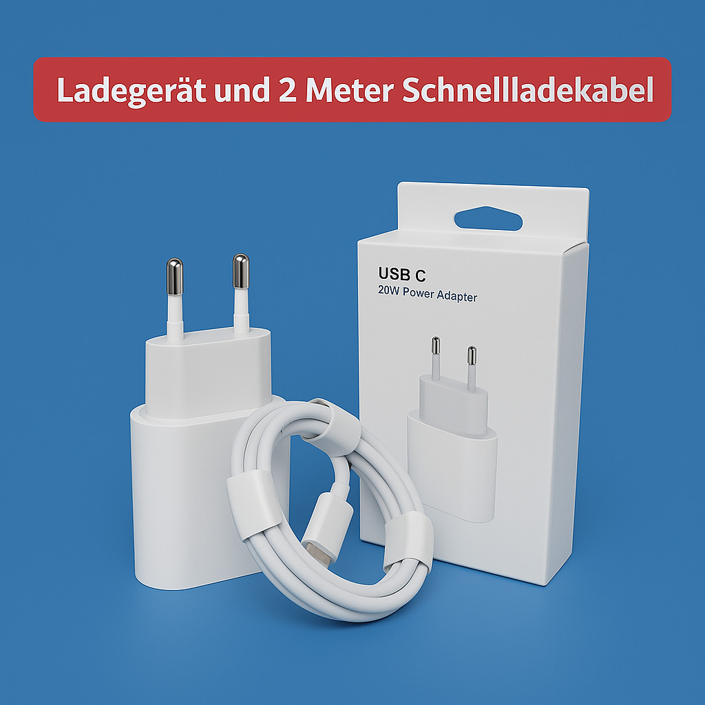 🔌 20W Schnellladegerät & Ladekabel für Apple iPhone – Ihr zuverlässiges Lade-Set . Das Netzteil & Kabel nutzen USB-C. Wenn Sie das Kabel mit einem anderen Netzteil verwenden möchten, achten Sie darauf, dass auch dieses einen USB-C Anschluss besitzt.