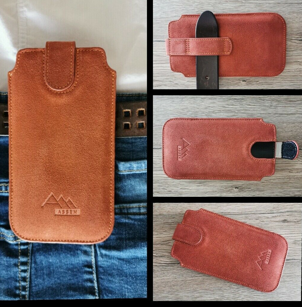 ASSEM echt Leder Gürtel Tasche Hülle Case cover Bumper Silikon Kordel Umhängen