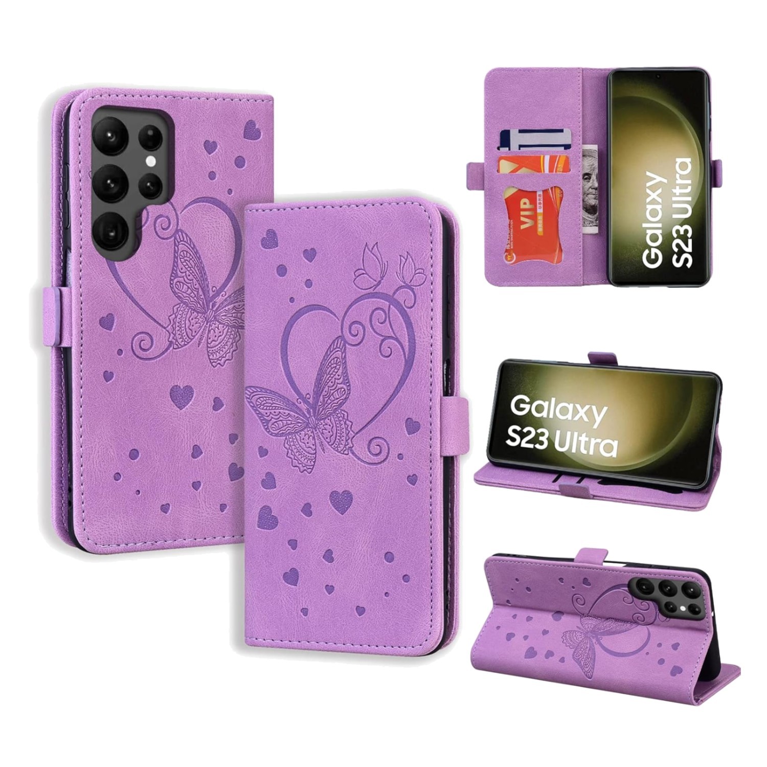 Violette Handyhülle PU Flip Case mit Kartenfach für Samsung Galaxy S23 Ultra
