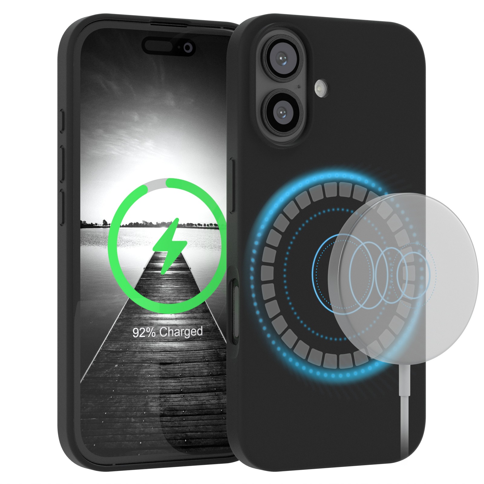MagSafe Hülle für Apple iPhone 16 Premium Silikon Handyhülle Cover Case Schwarz