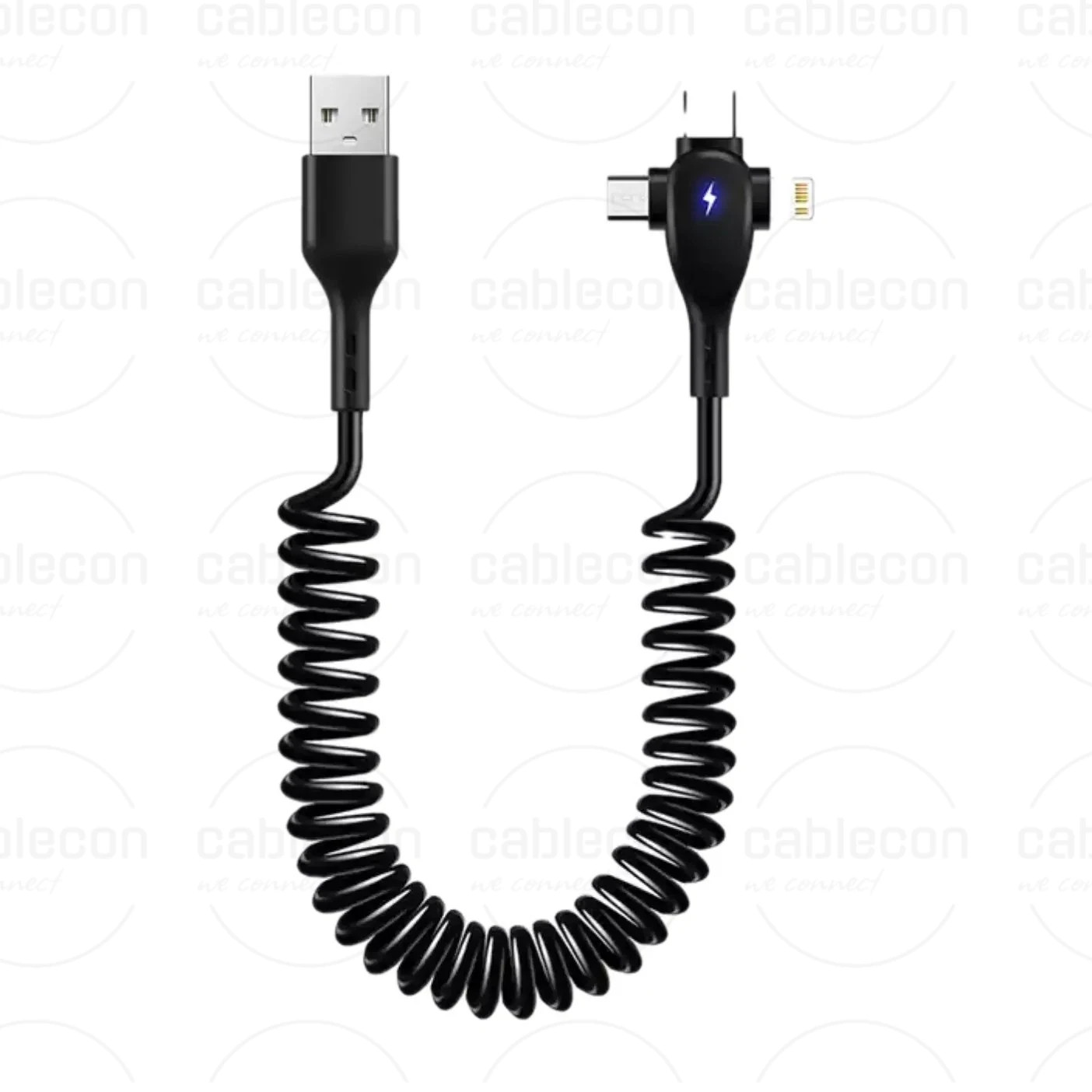 Mit diesem 3-in-1 USB Spiralkabel von aurum sind Sie stets bestens ausgestattet, egal ob im Auto, Büro oder unterwegs. LED Beleuchtung im Stecker. Länge:0,4 m | Material: Kunststoff, PVC. LED: beleuchteter Stecker zum einfachen auffinden auffinden im dunkeln, ideal fürs Auto.