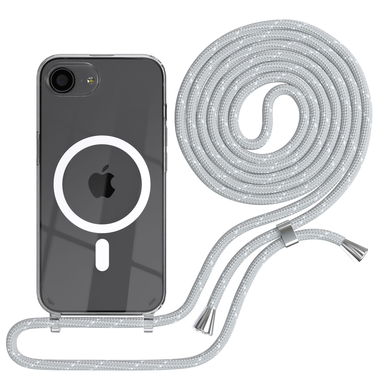 MagSafe Handykette für Apple iPhone 16e Hülle mit Band Cover Kette Grau / Weiß