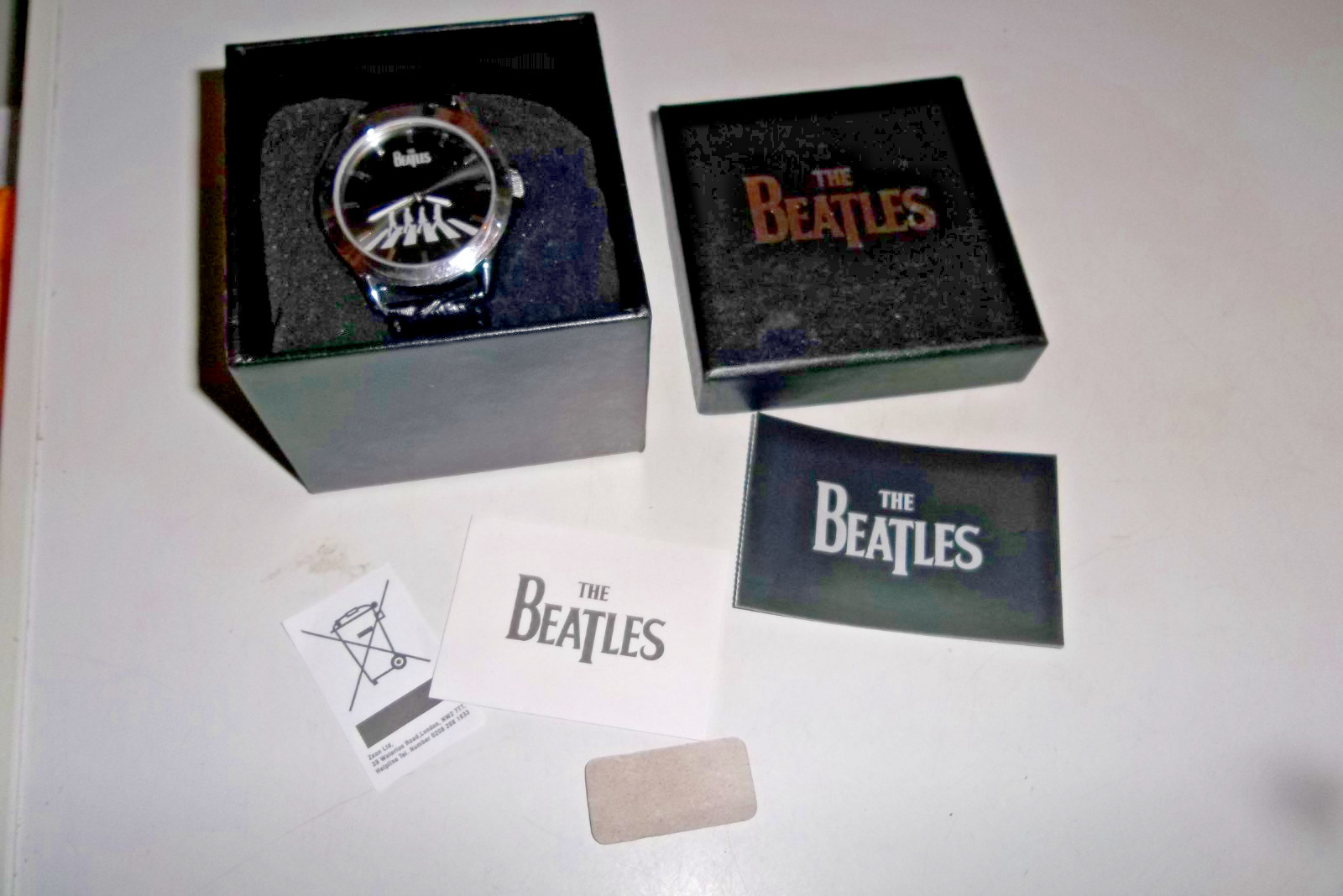 THE BEATLES. "THE BEATLES" also engraved on buckle AND back of strap. LOVELY GIFT FOR A BEATLES FAN. A FOOT NOTE FOR LESS EXPERIENCED BEATLES COLLECTORS;. WATCH FACE HAS. BACK AND FRONT OF WATCH STILL HAS IT'S PROTECTIVE POLOTHENE COVER ON, TO PROTECT FROM SCRATCHES SCRAPES ETC.