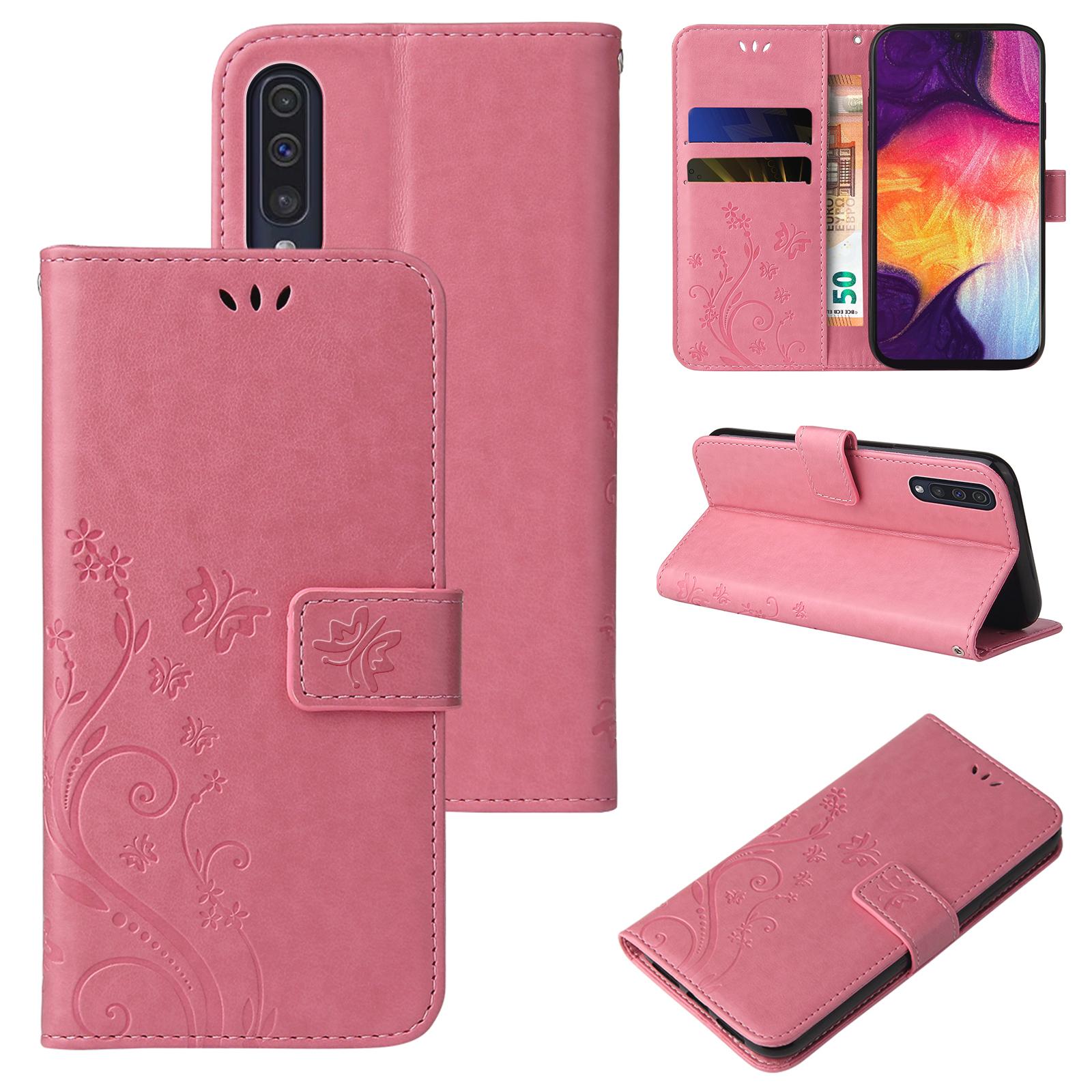 Handy Tasche für Samsung Galaxy A50 / A51 Handyhülle Blumen Cover 9H Displayglas