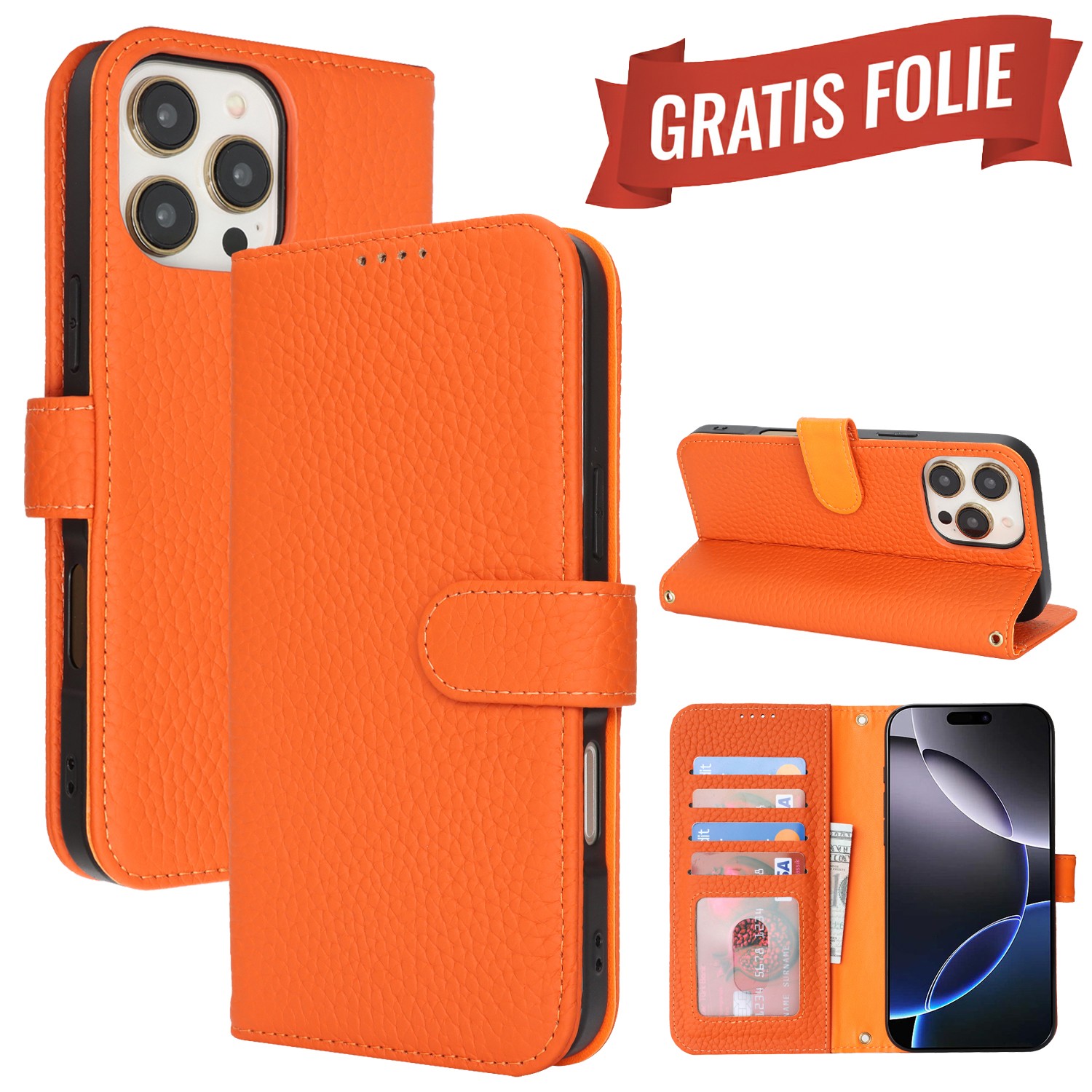 Echt Lederhülle für iPhone 16 Pro Max 16 Plus 16e Hülle FlipCase Etui Klapphülle