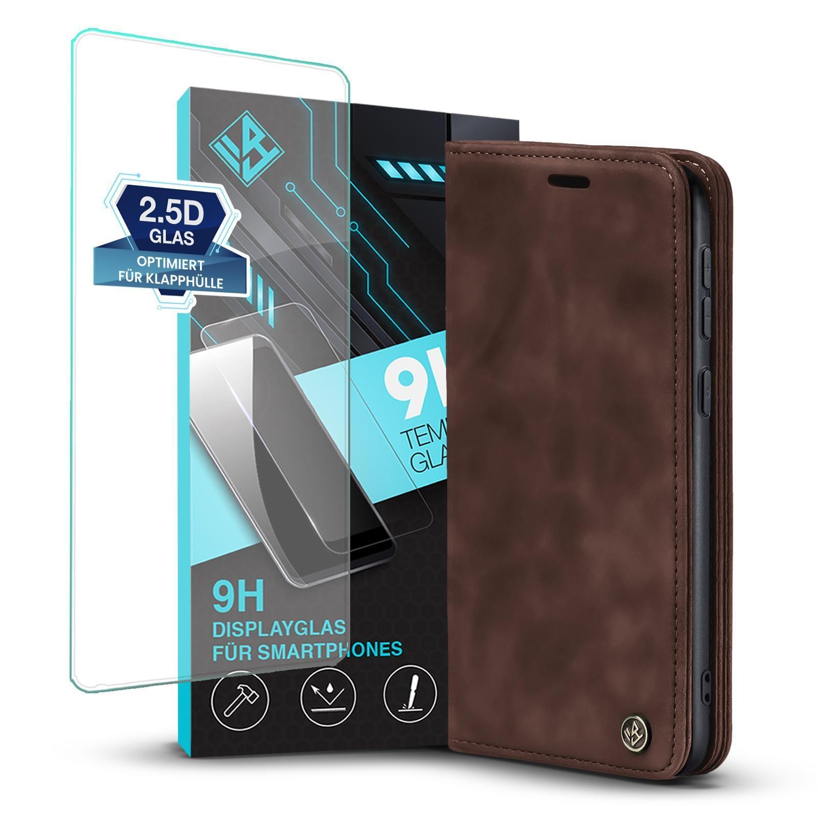 Hochwertiges Case passend für Motorola Moto E13 mit 9H Displayglas - Exakte Passgenauigkeit durch verstärkte Silikonschale (Schwarz) - Qualitative Verarbeitung mit strapazierfähigen Materialien - Smartes Design mit Geldfach und zwei Kartenfächern - Praktische Smartstand-Funktion - Schneller Blitzversand und engagierter Kundendienst an 7 Tagen die Woche!.