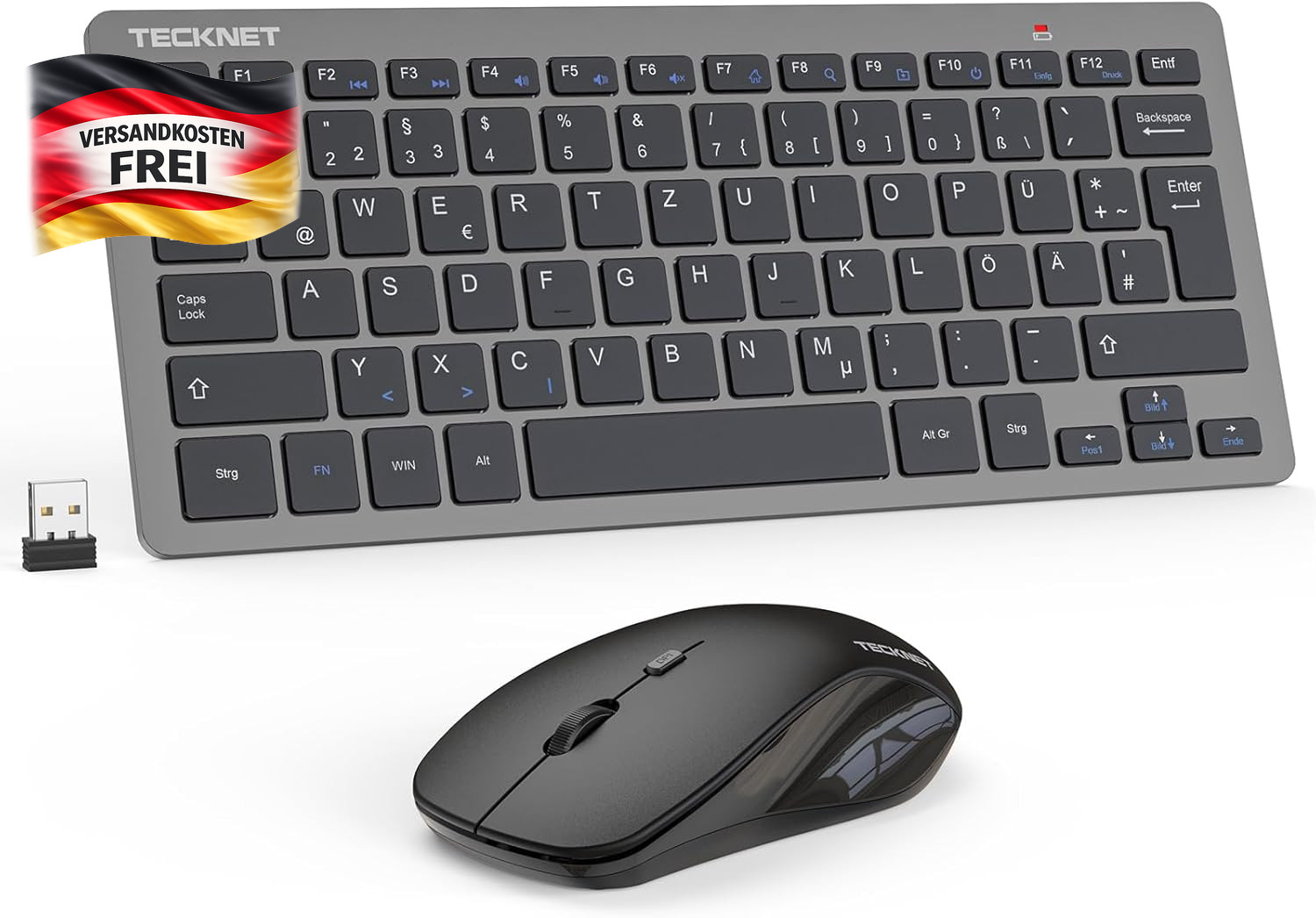 Kabelloses Tastatur Maus Set Deutsch QWERTZ 2.4 GHz Funk Mini Tastatur Mouse 15M