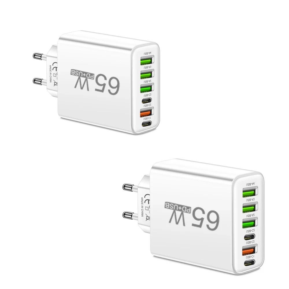 2X 6-Fach Schnell Ladegerät Stecker USB-A & USB-C 65W Netzteil Adapter Handy Tab
