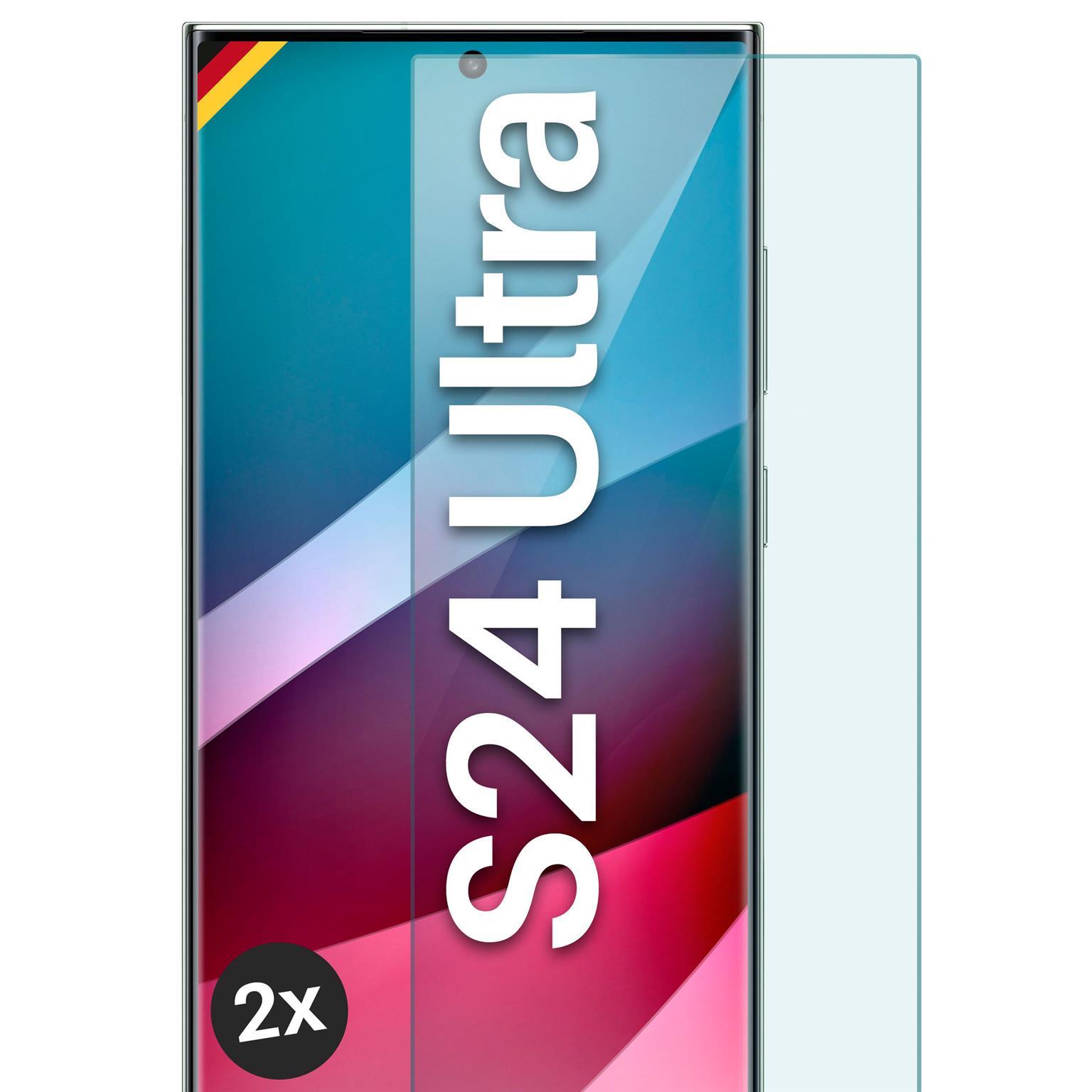 Starker Schutz und gestochenscharfe Sicht auf das Display in wenigen Sekunden - Schnell und einfach blasenfrei angebracht - Perfekt abgestimmter 9H Glasschutz genau für Ihr Smartphone | Das Frontglas ist passgenau für das Samsung Galaxy S24 Ultra - exakt auf die gerade Fläche angepasst. Die Kanten und Aussparungen der Handyfolie sind sauber und präzise verarbeitet .