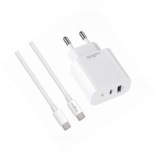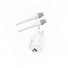 Leistungsstarkes 20W GaN PD QC Netzteil mit zwei Anschlüssen (USB-C & USB) für ultraschnelles Laden. Die innovative GaN-Technologie sorgt für hohe Effizienz und kompakte Größe. Ideal für moderne Geräte, die schnelles und sicheres Laden benötigen. Klein und praktisch für unterwegs. Hochpunkte: - 20W Leistung - GaN Technologie für schnelles und effizientes Laden - 1x USB-C und 1x USB-A Anschluss - Inklusive 1 Meter USB-C zu USB-C Kabel - Kompaktes und modernes Design