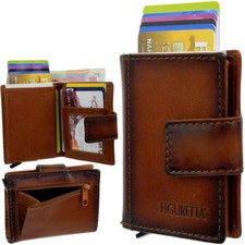 Figuretta - Qualität - Aluminium Etui: für bis zu 6 Karten, je nach Beschaffenheit, z.B. Struktur Zahlen bei Kreditkarten. Durch Bewegung des kleinen Hebels werden die Karten wie in einem Lift, versetzt nach außen geschoben, so dass die leichte Entnahme jeder einzelnen Karte möglich wird. Die Karten sind sicher aufbewahrt und können nicht herausfallen. Angenehm griffige High-Tech-Aluminium-Oberflächen, geschützt durch Synthetik Sicherheitsetui. 2 kleine Einsteckfächer in der Synthetik Schutzhülle.