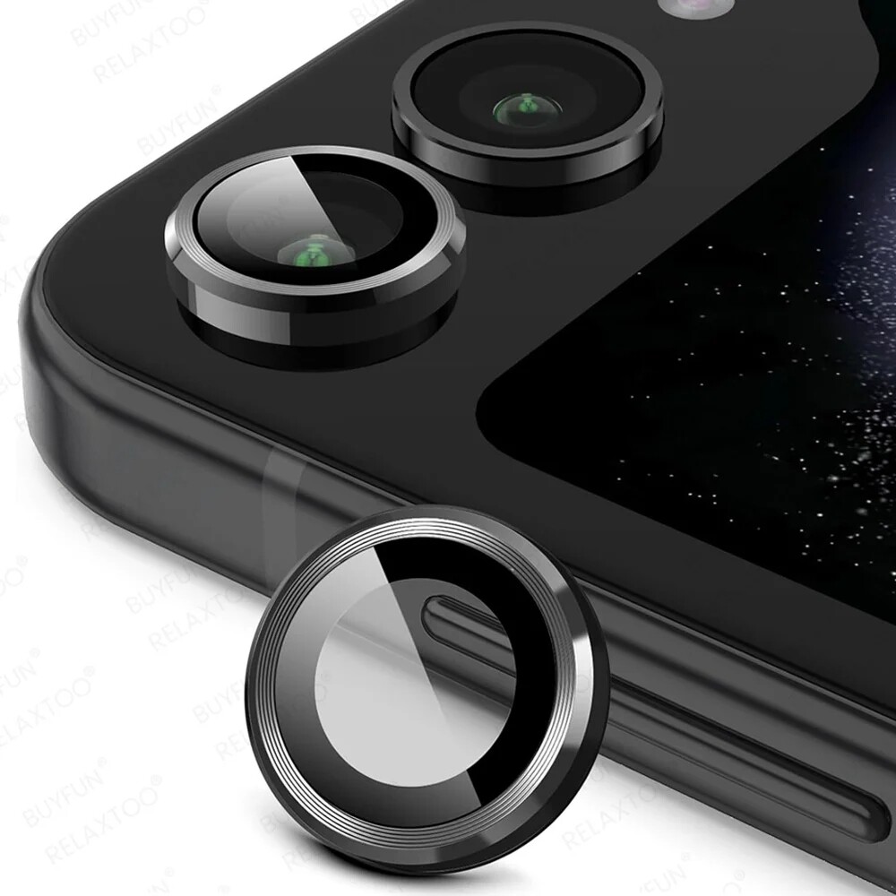 Made of aluminum alloy and tempered glass, it fully fits the lens of Samsung Z Flip 5 / Flip 6 and protects the lens glass from scratches in all directions. 1 set of lens film (2pcs). The black board is used to help you aim the lens to install, after installation, you need to remove it.