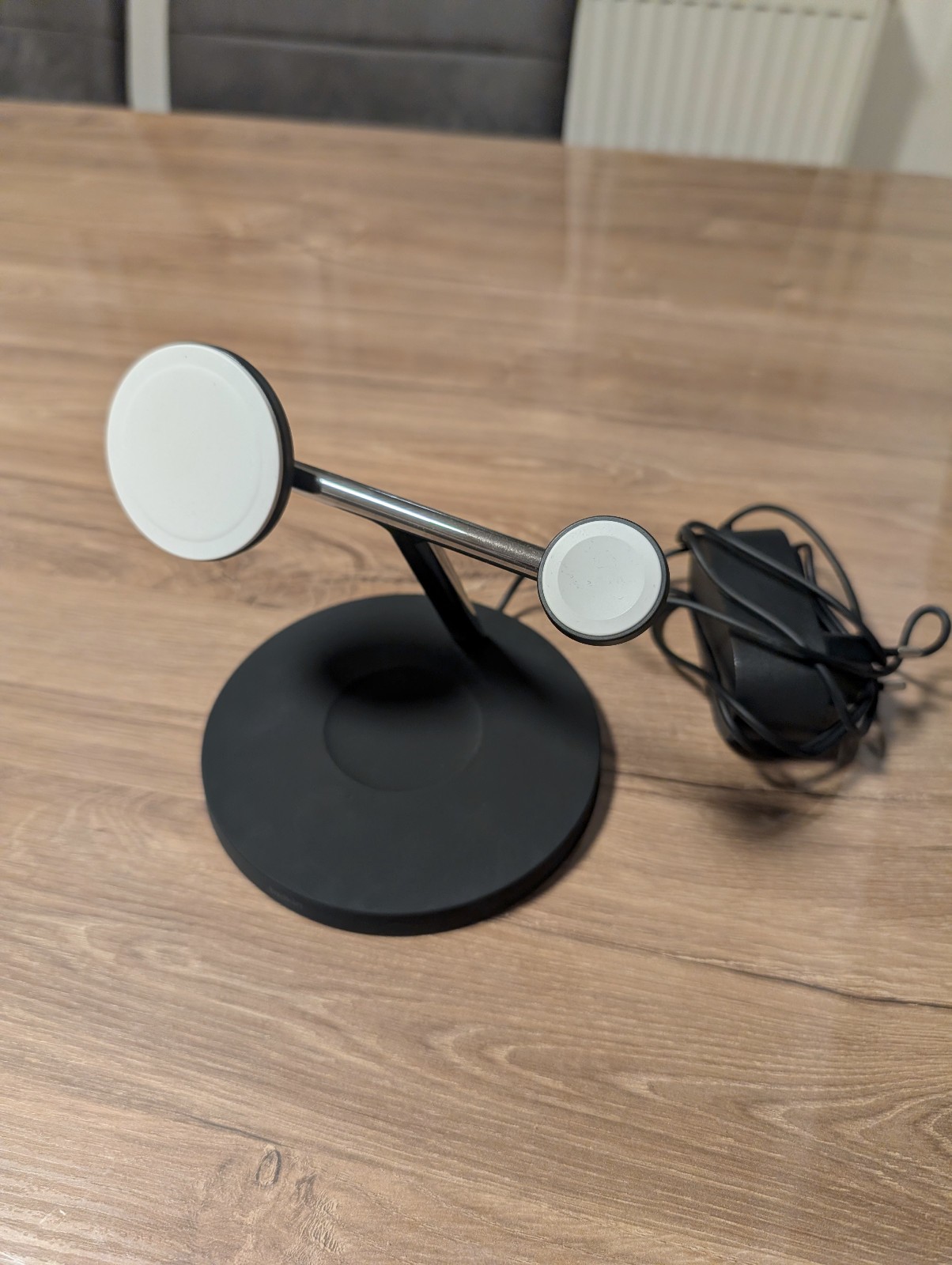 Das geradlinige, stylische Design passt perfekt zu Ihrem iPhone und in jede Inneneinrichtung. Eine ganz neue 3-in-1-Lade-Lösung mit MagSafe-Befestigung für Ihre Geräte von Apple. Zustand: sehr gut, keine Kratzer, keine Dellen.