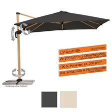 Ampelschirm SCHNEIDER SCHIRME "Rhodos Twist Woody", grau (anthrazit), Obermaterial: 100% Polyester, Standschirme, mit Schutzhülle und Schirmständer, ohne Wegeplatten
