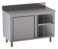 Ob in Restaurant, Kantine, Hotel, Bäckerei, Krankenhaus oder Großküche: Edelstahlmöbel sind die Grundlage für eine saubere Küche und den hygienischen Umgang mit Lebensmitteln aller Art. Der Arbeitsschrank RCSSCB-200X60-S von Royal Catering, den Experten für hochwertigen Gastronomiebedarf, gehört in jede professionell eingerichtete Küche und wurde speziell für die hohen Anforderungen in der Gastronomie entworfen. Die 200 x 60 cm große Arbeitsoberfläche des modernen Edelstahlschranks bietet jede Menge Platz für Ihre tägliche Arbeit mit frischen Lebensmitteln, Zutaten und Küchengeräten. Die geniale Kombination aus Arbeitsfläche und Aufbewahrungsschrank ermöglicht vielfältige Einsatzmöglichkeiten und sorgt dauerhaft für Ordnung in Ihrer Küche. Ausgestattet mit zwei praktischen wie platzsparenden Schiebetüren, empfiehlt sich der Arbeitsschrank Edelstahl vor allem in engen Küchen. Zusätzlich sind auf einer Seite drei Schubladen mit jeweils den Maßen 44 x 36 x 13 cm integriert, die Sie für kleinere Küchenutensilien nutzen können. Im Inneren untergebrachte Utensilien bleiben sicher und sauber hinter den leicht zu bedienenden Schiebetüren verstaut. Der Innenraum ist durch einen stabilen Einlegeboden unterteilt, der für eine übersichtliche Anordnung sorgt. Er kann ebenso wie die untere Ablagefläche mit bis zu 100 kg belastet werden. Dies ergibt eine enorm hohe Gesamttragkraft des Gastro Arbeitsschranks von maximal 500 kg. Optimale Stabilität erlangt der 85 cm hohe Edelstahl Arbeitsschrank auch bei unebenen Böden mithilfe der vier um 10 mm höhenverstellbaren Füße. Der hochwertige Edelstahl besticht durch eine hohe Widerstandsfähigkeit, garantiert eine lange Lebensdauer und ist beständig gegen Korrosion sowie mechanische Beschädigungen (z. B. Kratzer). Das Material lässt sich leicht und gründlich reinigen, und bietet somit perfekte Voraussetzungen für ein hygienisches Arbeiten mit Lebensmitteln. Der Aufbau des eleganten Arbeitsschranks geht Ihnen dank der mitgelieferten und leicht verständlichen Montageanleitung mühelos von der Hand.